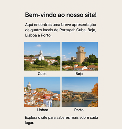 Bem-vindo ao nosso site! Aqui encontras uma breve apresentação de quatro locais